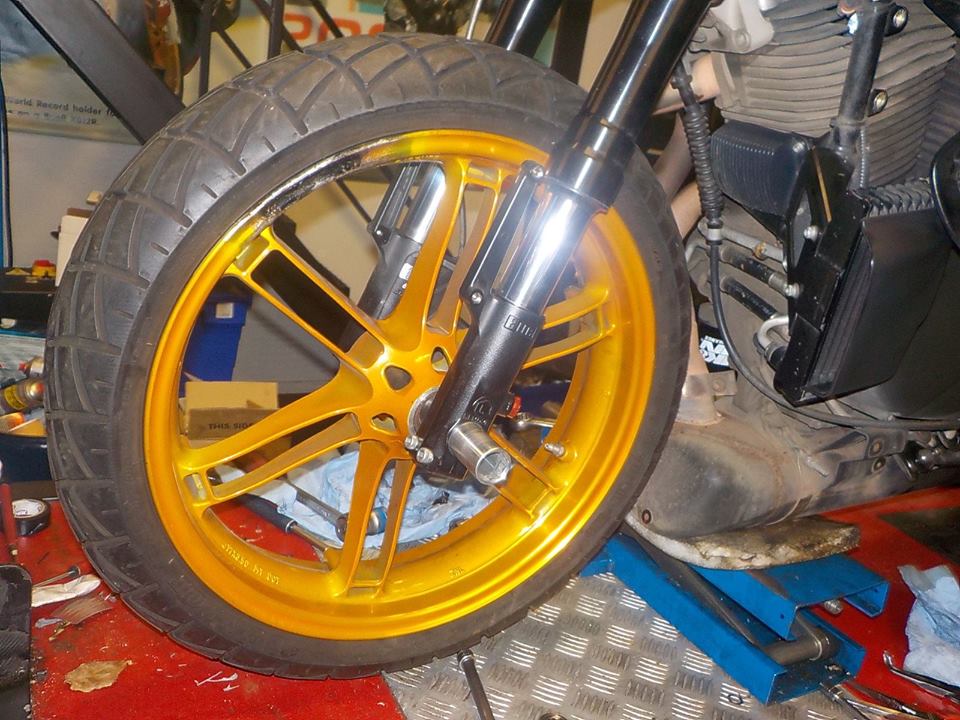 rear wheel out.. needs to be coated Black — bij Twin Motorcycles Buell Support forever.