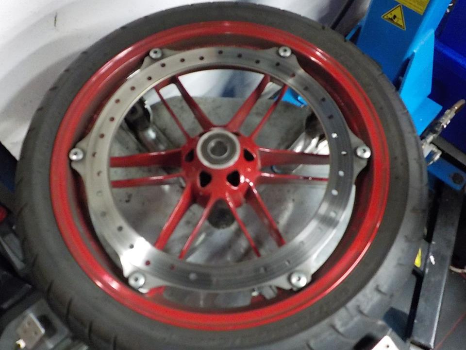 prepping the wheels for powder coating.. removing the pulley — bij Twin Motorcycles Buell Support forever.
