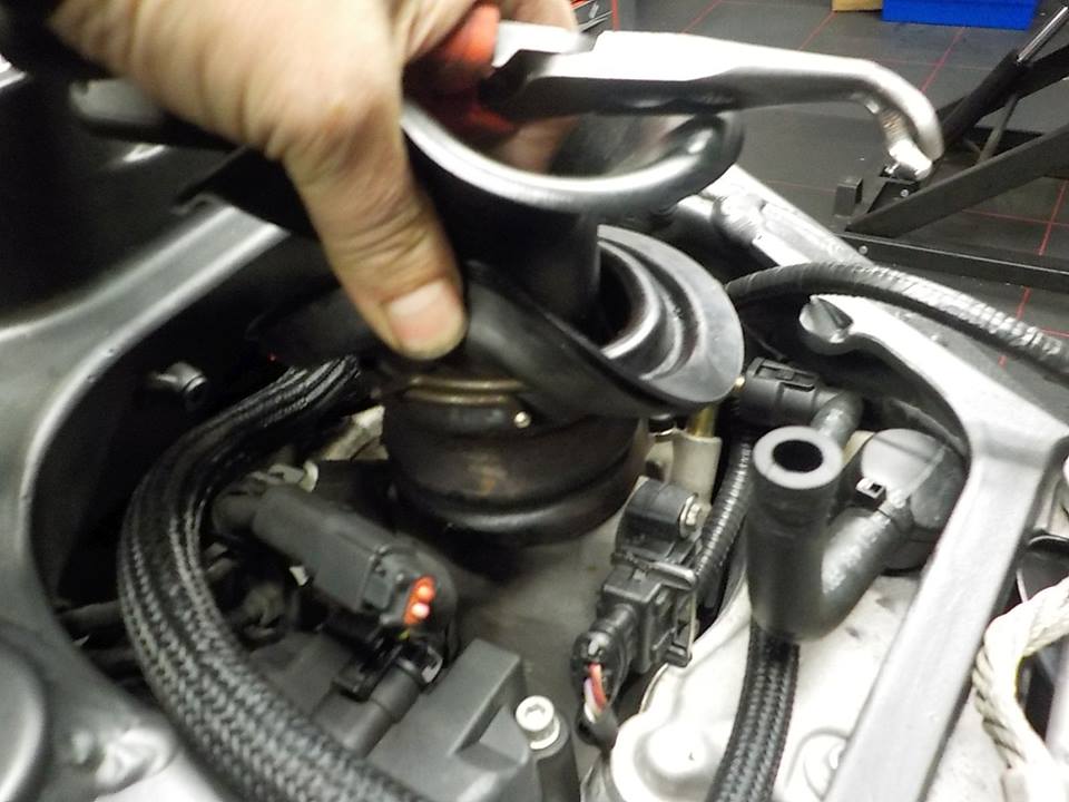 not to such to the cover.. you need to mount it correct push down on the maniold and put the clip on good — bij Twin Motorcycles Buell Support forever.