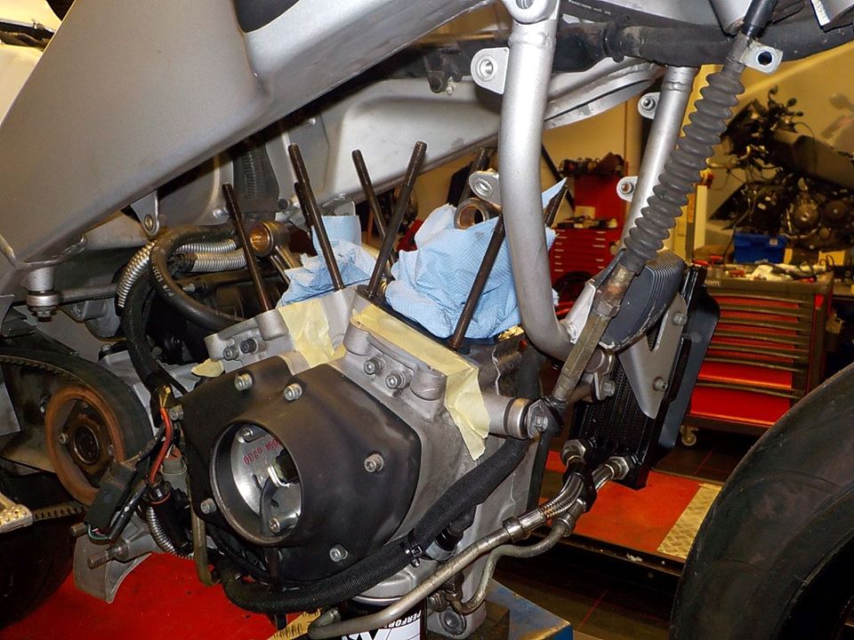 and the pushrod covers go on — bij Twin Motorcycles Buell Support forever.