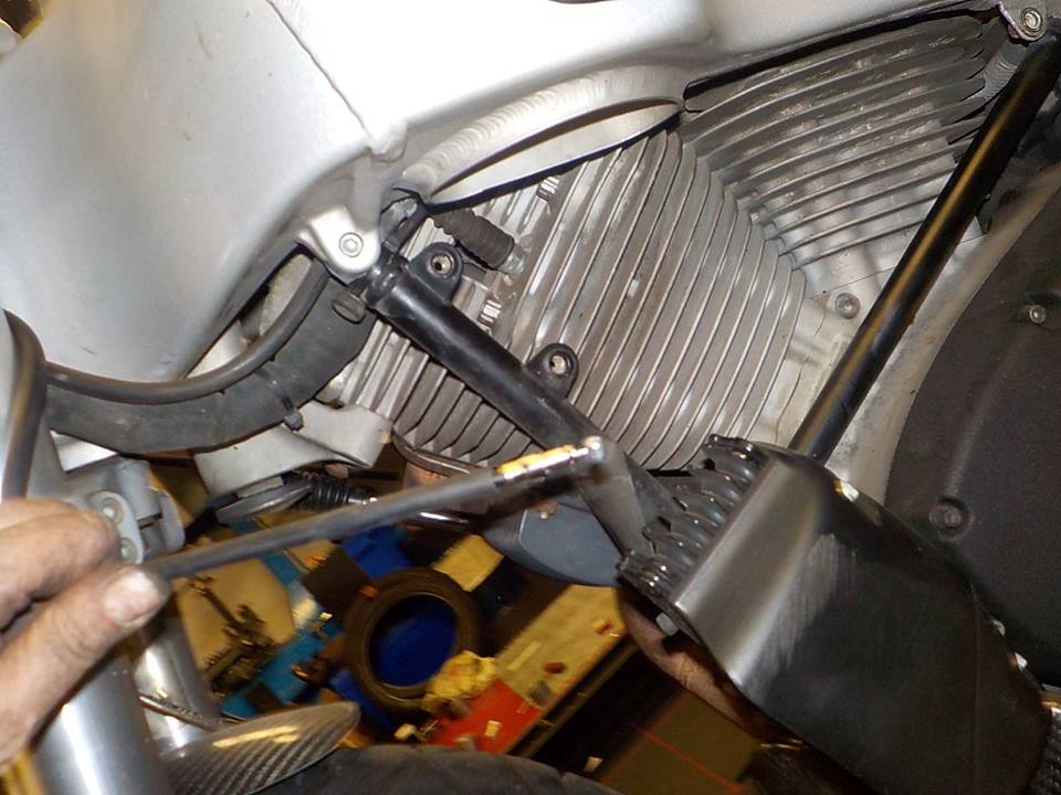 airbox of and top tierod loose — bij Twin Motorcycles Buell Support forever.
