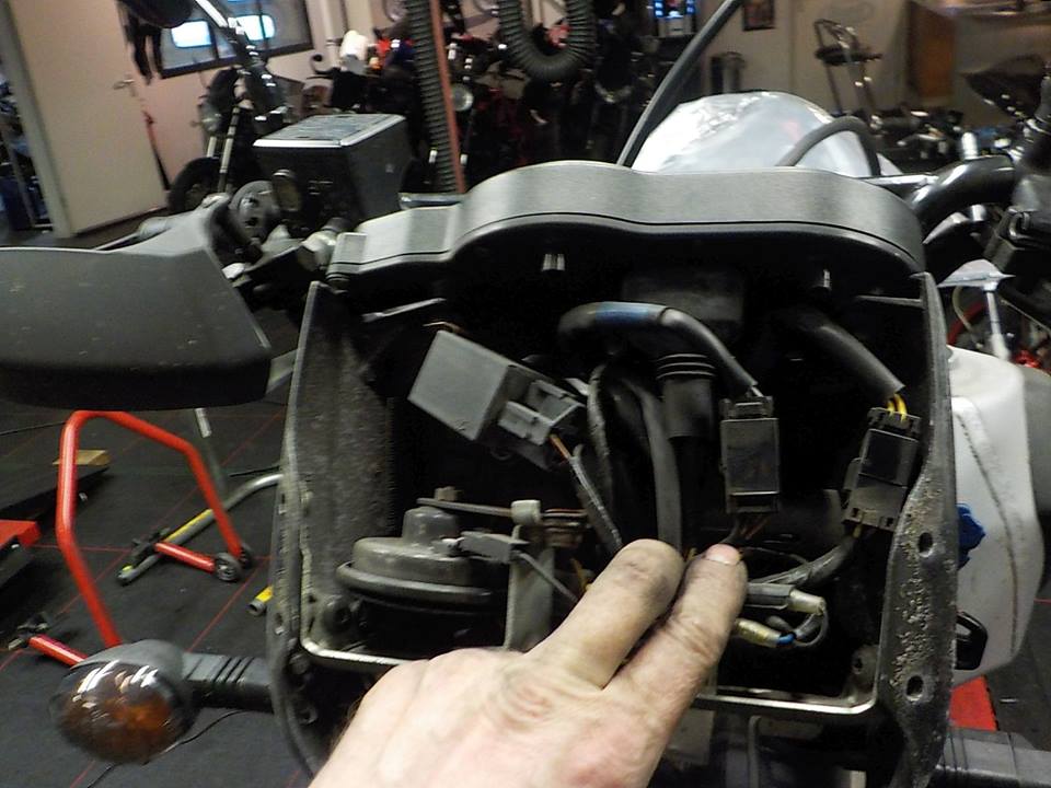 flyscreen of to route the cables — bij Twin Motorcycles Buell Support forever.