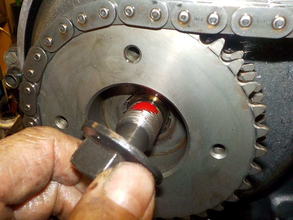 mounting the cover.. put your hand under to pusht the chain on the tensioner shoo — bij Twin Motorcycles Buell Support forever.