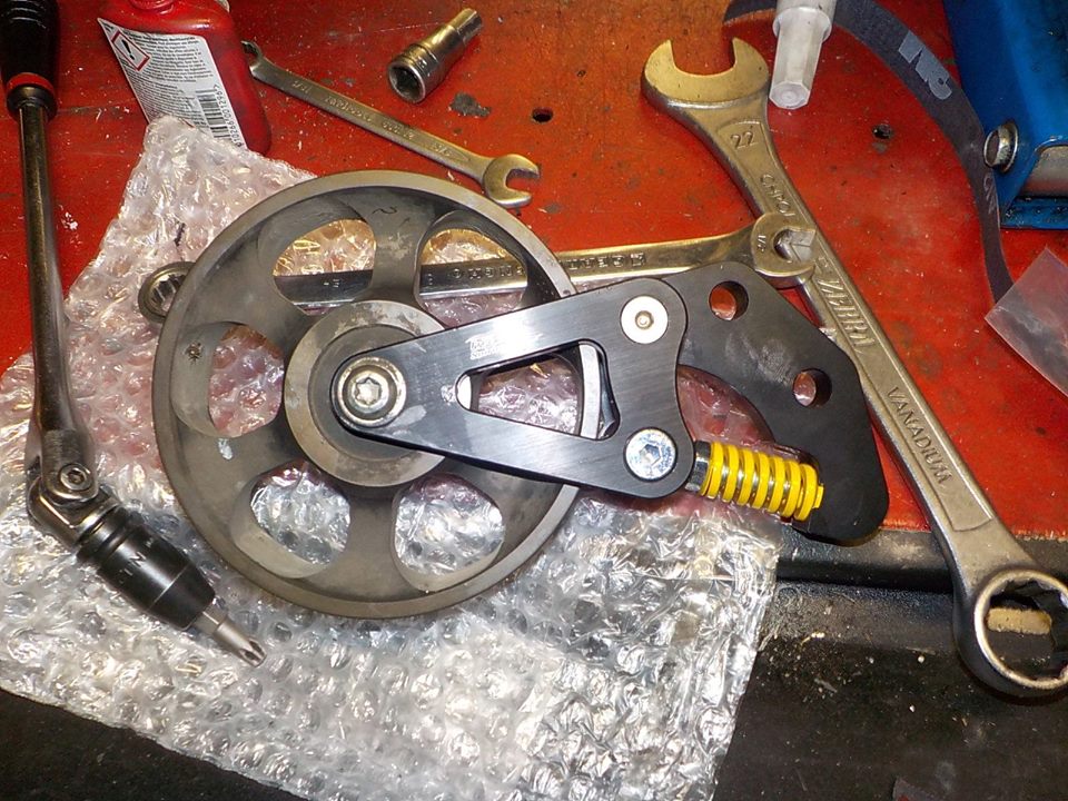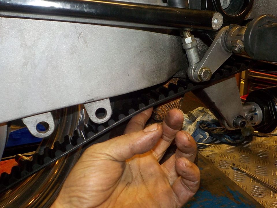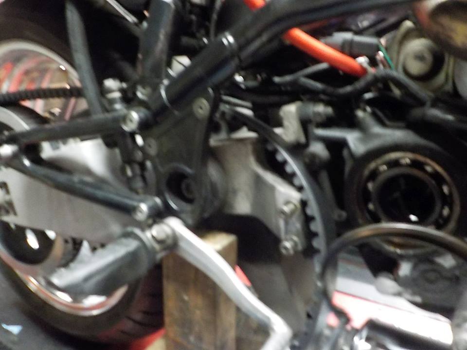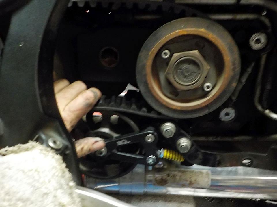 some neverseas on the studs and tensioner and belt on — bij Twin Motorcycles Buell Support forever.