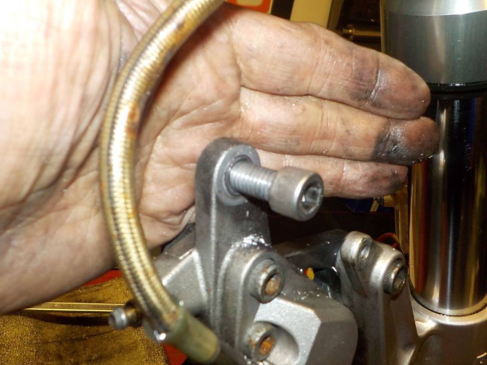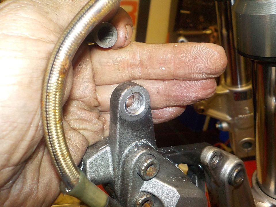 adressing the caliper bolt problem . drilling to OS for time sert repair — bij Twin Motorcycles Buell Support forever.