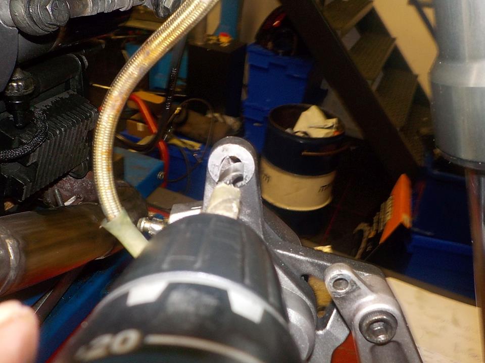 adjusting the shifter drilbit 3 mm in the hole and space to the top finger — bij Twin Motorcycles Buell Support forever.