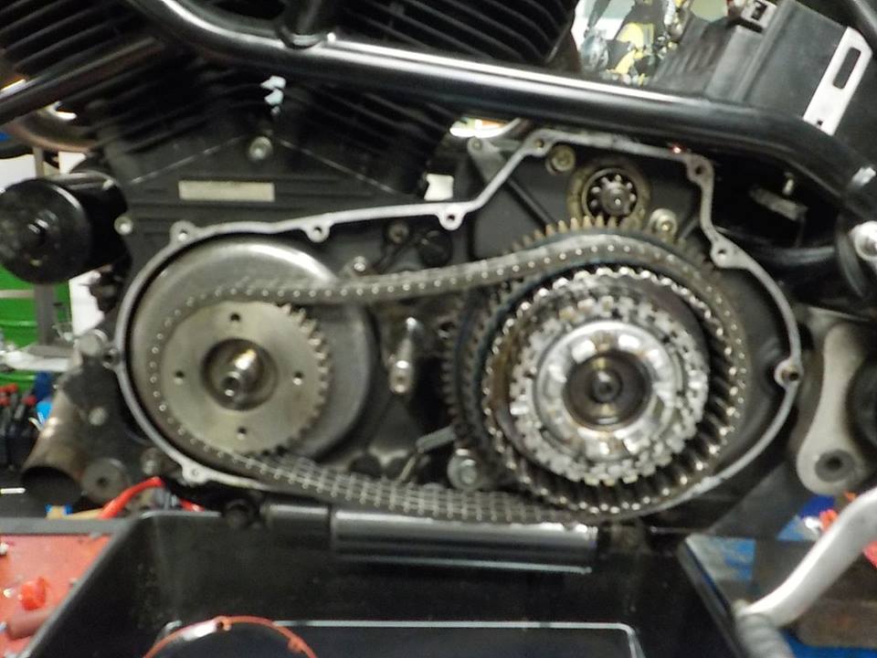world traveler Uly in for new belt and spring loaded tensioner so the belt will live longer — bij Twin Motorcycles Buell Support forever.
