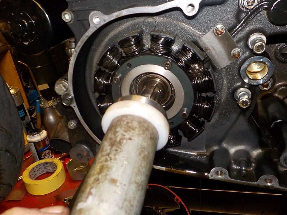 cleaning the spacer before you put it back in — bijTwin Motorcycles Buell Support forever.