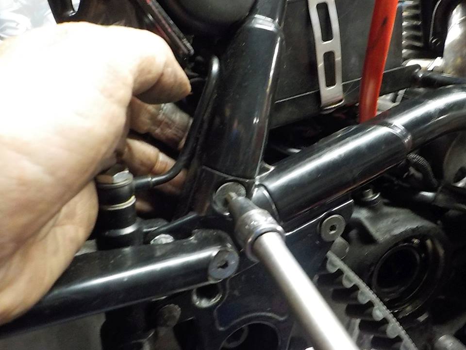 loosening the detachable frame piece — bij Twin Motorcycles Buell Support forever.