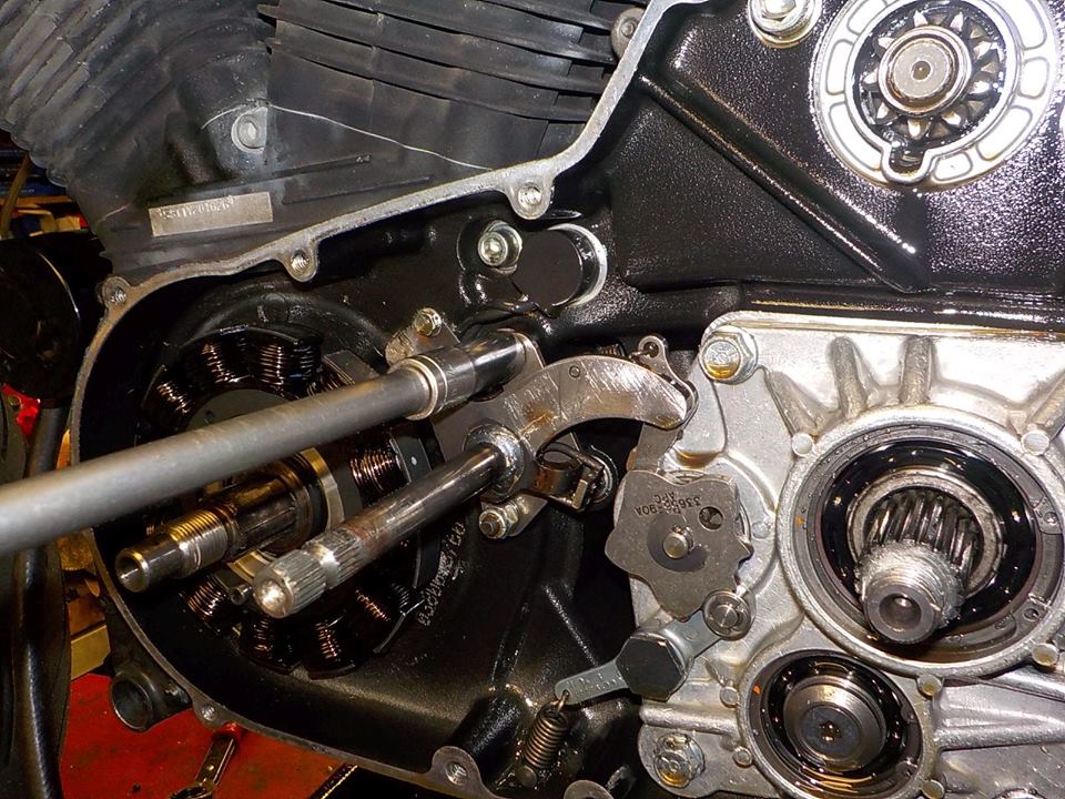 and primairy drive removed .. take out the shifter — bij Twin Motorcycles Buell Support forever.