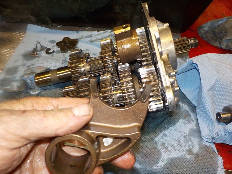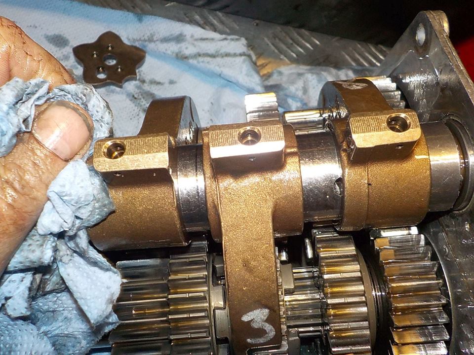 leaning the fork with to much contact to the gear, wearing out like this.. the gears will not travel enough to correctly catch the dogs — bij Twin Motorcycles Buell Support forever.