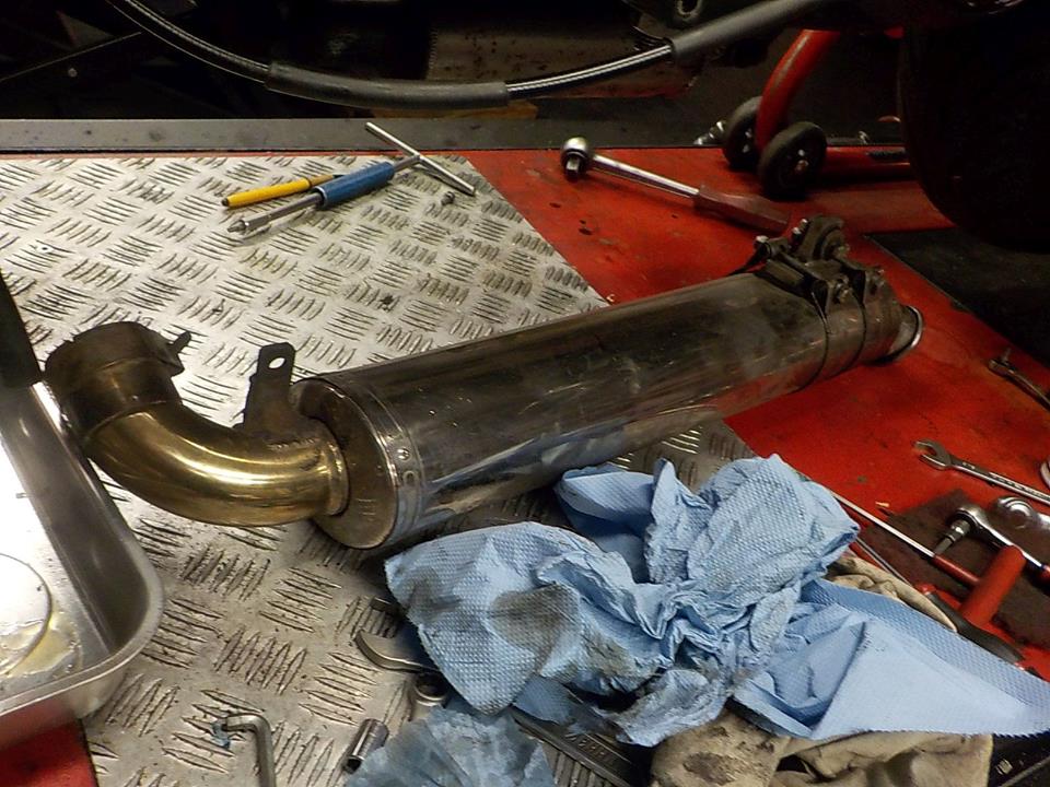 and exhaust removal to drain the gearbox — bij Twin Motorcycles Buell Support forever.