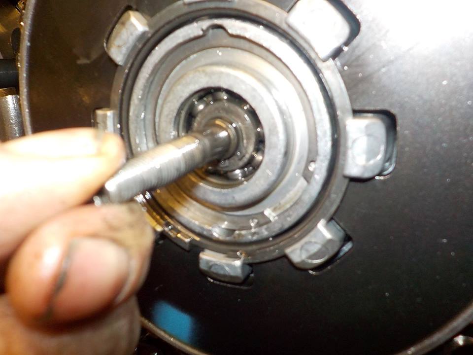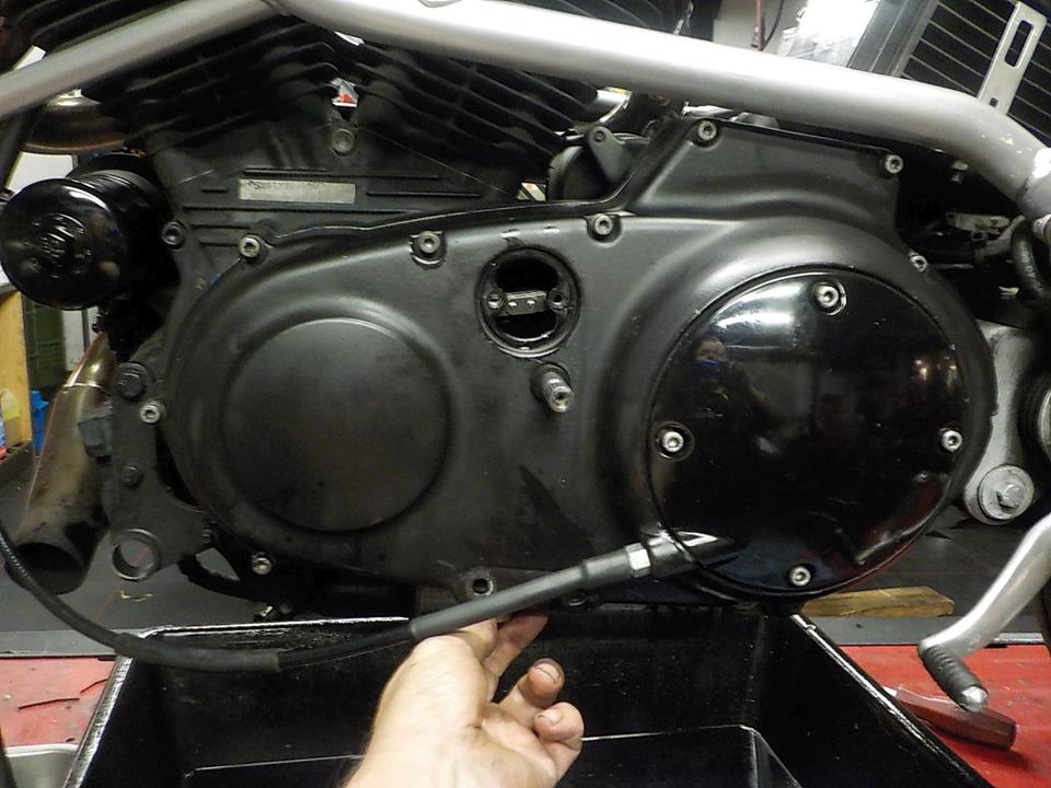 primairy cover of and taking out the pulling plate — bij Twin Motorcycles Buell Support forever.