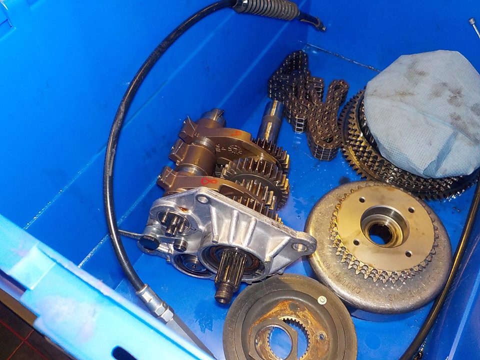 gearbox out and boxing up the parts — bij Twin Motorcycles Buell Support forever.