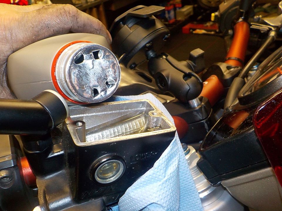 looseing the cover , let it leak down — bij Twin Motorcycles Buell Support forever.