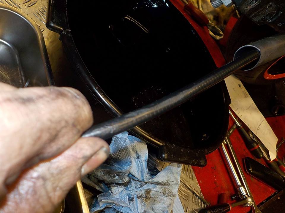 draining the case from engine oil — bij Twin Motorcycles Buell Support forever.
