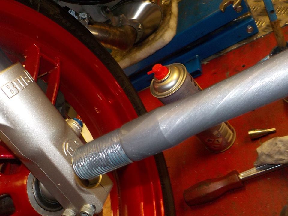 and some protective tape not to dammage the cap nuts — bij Twin Motorcycles Buell Support forever.