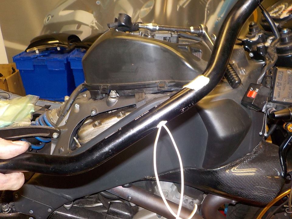 pulling the wire trough — bij Twin Motorcycles Buell Support forever.