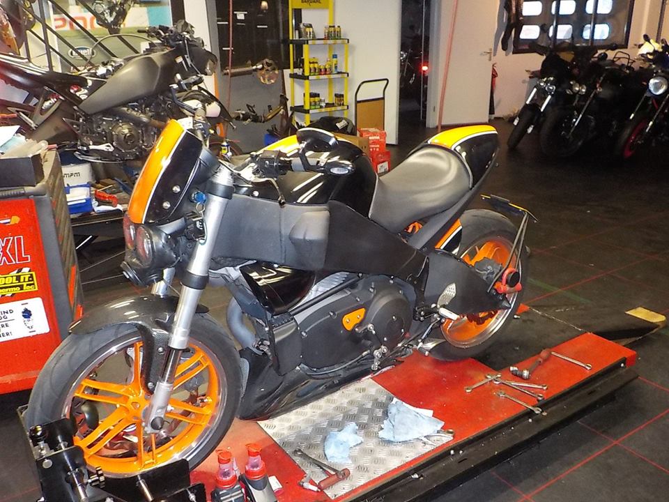 forks done and back in bike — bij Twin Motorcycles Buell Support forever.