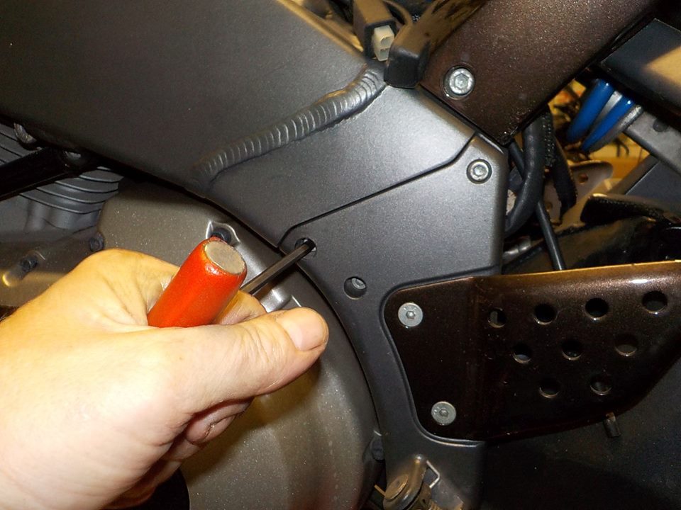 left peg bracket off to get to the pump — bij Twin Motorcycles Buell Support forever.