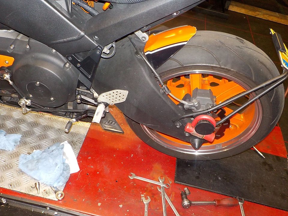 and loosen the swing arm.. i leave the axle in as a limiter — bij Twin Motorcycles Buell Support forever.