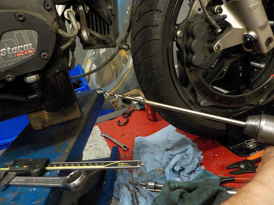 6-11-2018 - 17-5-2018 Buell XB header studs drilling, Buell 1125 service and charging check