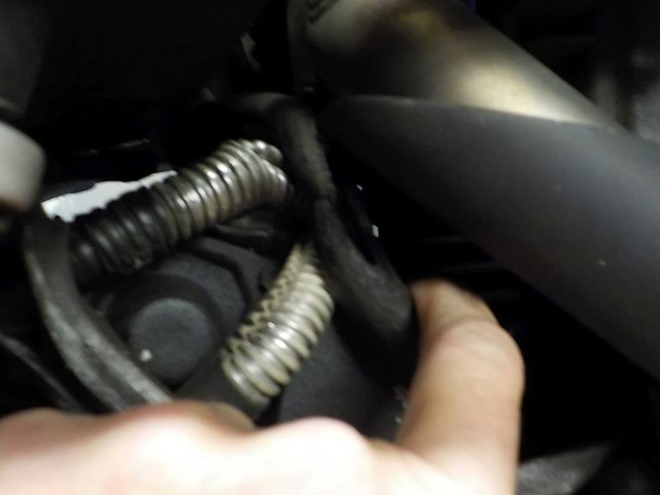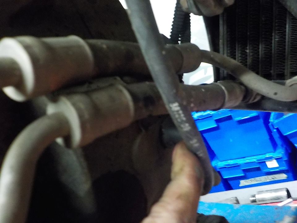 getting things out the way.. w-brace loos, note the marking on the oil line from the clutch cable .. look for this !! — bij Twin Motorcycles Buell Support forever.