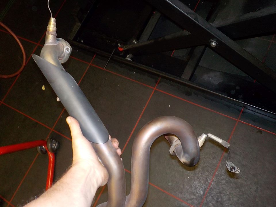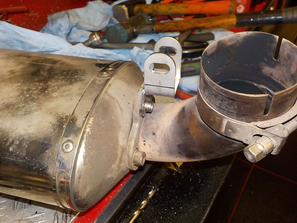 mounting the exhaust. i will give the braket a few wacks — bij Twin Motorcycles Buell Support forever.