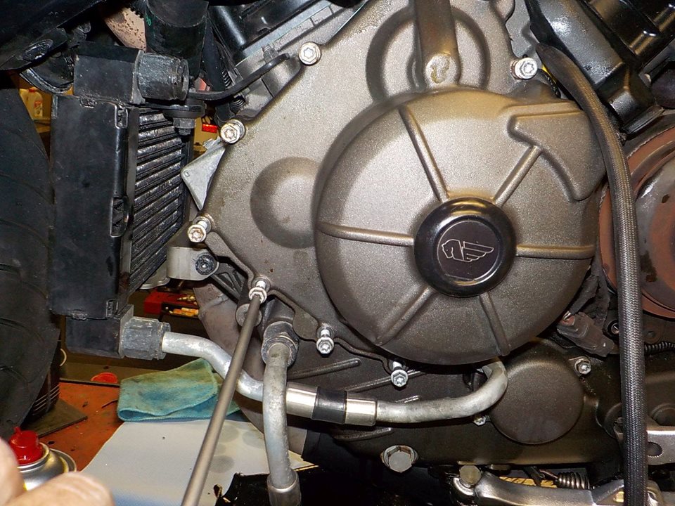 .clutch cover gasket looks like it is leaking , i could tighten the 3 front lower screws — bij Twin Motorcycles Buell Support forever.