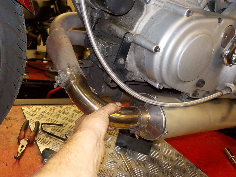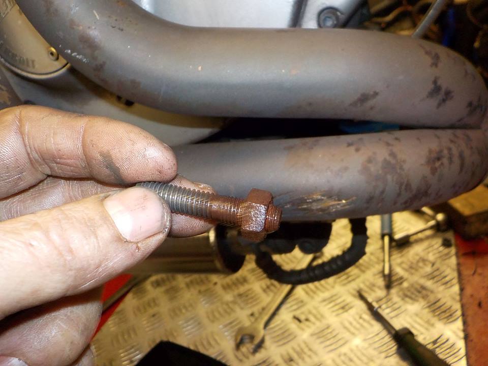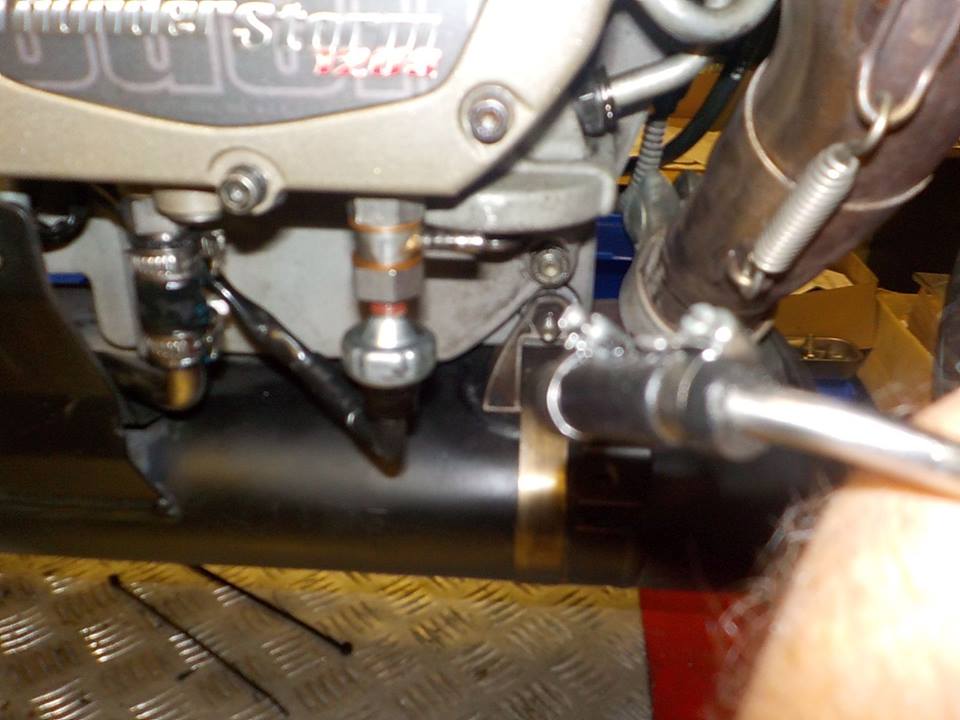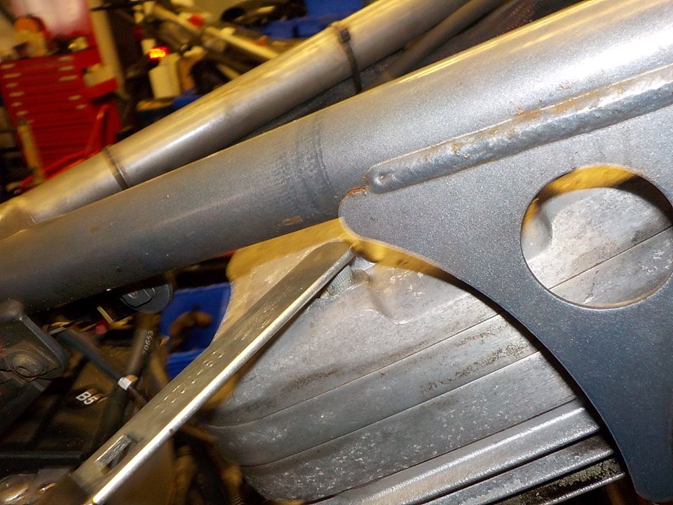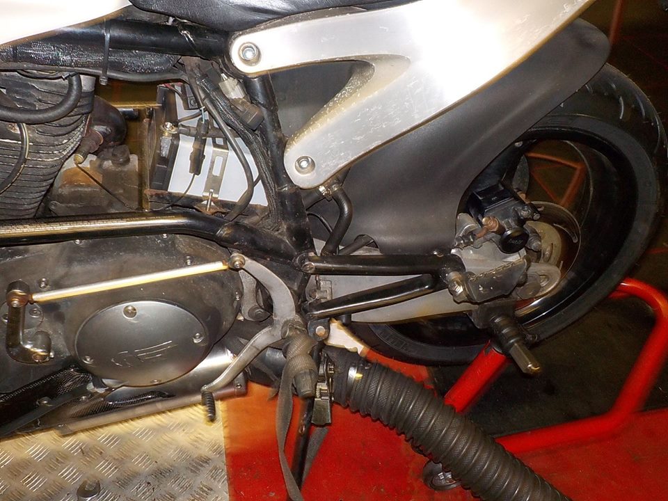 under the frame with a spanner — at Twin Motorcycles Buell Support forever.