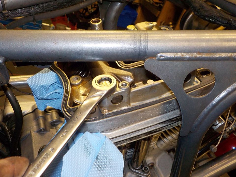 rear rocker cover screws.. under the frame is a special tool for it