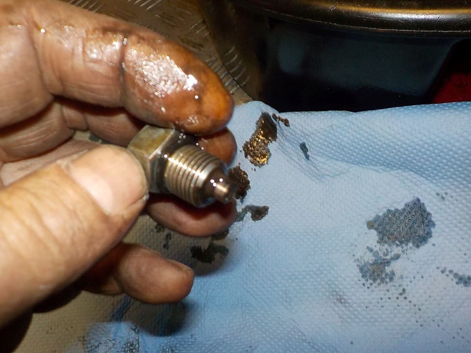 now first oil drain , some metal dust starting to get on the plug.. ( 68000 km on the bike ) — at Twin Motorcycles Buell Support forever.