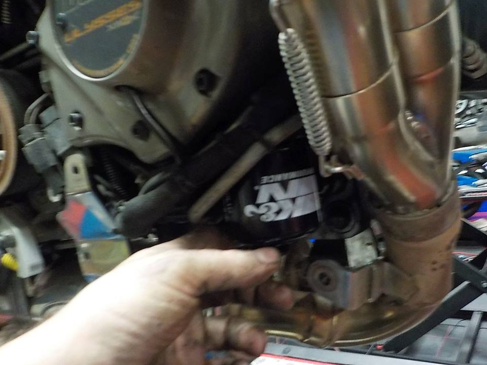 moving tot he front.. oil filter change — at Twin Motorcycles Buell Support forever.