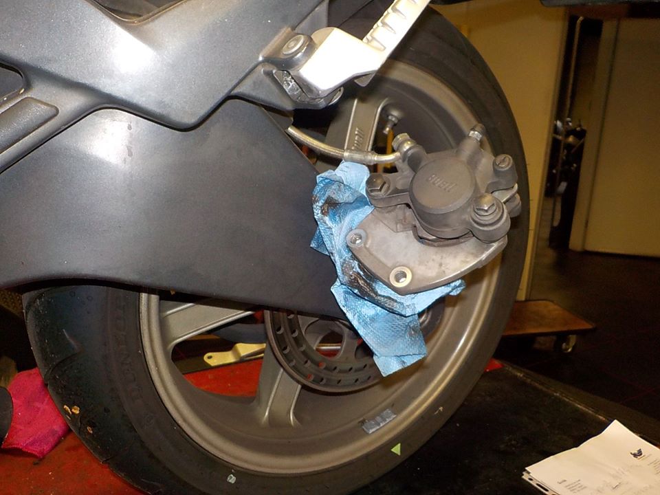 rear wheel check .. taking of the caliper — at Twin Motorcycles Buell Support forever.