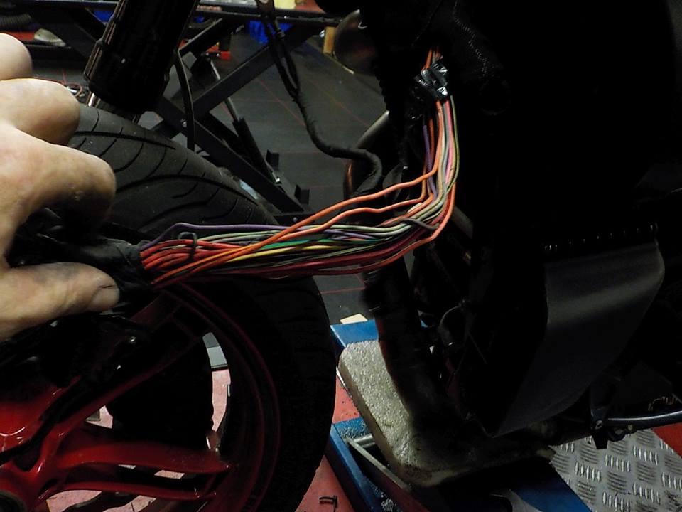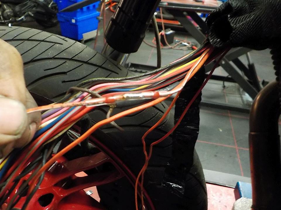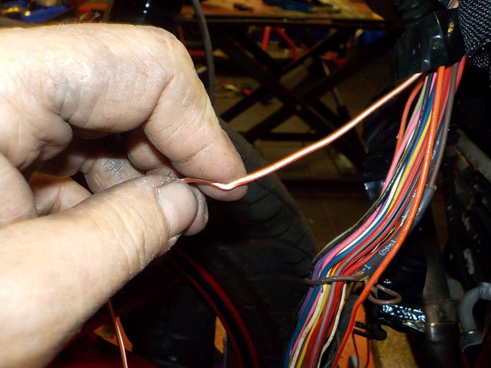 tracing the wires.. red/white indicator left start there.. i feel the wire break — at Twin Motorcycles Buell Support forever.