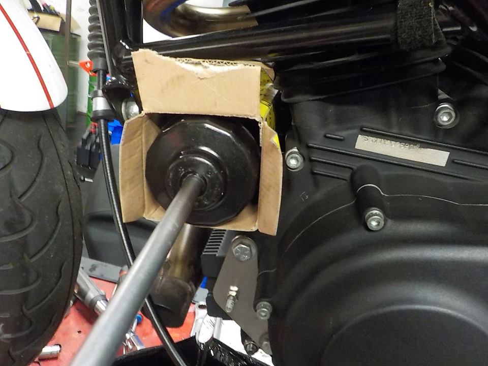 removing the oil filter.. to help allot off spill put the oil filter box back on.. to guide the oil comming out