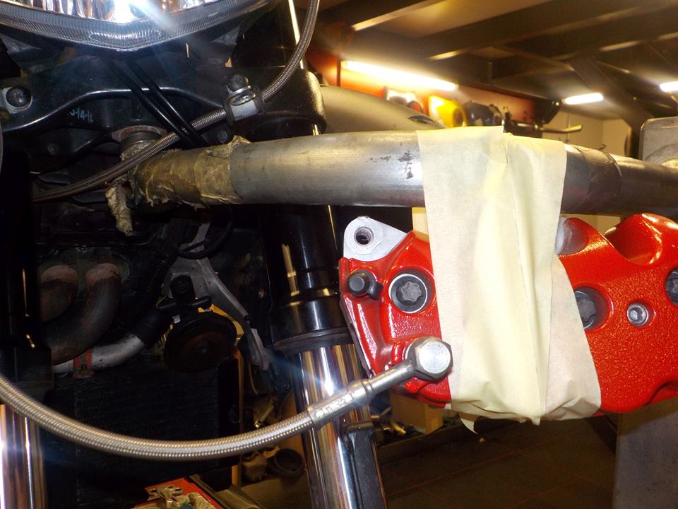 rear caliper loose using the big holes in the disk ( made for this )