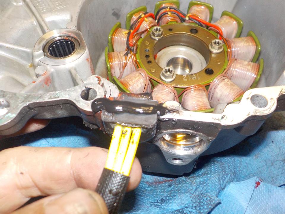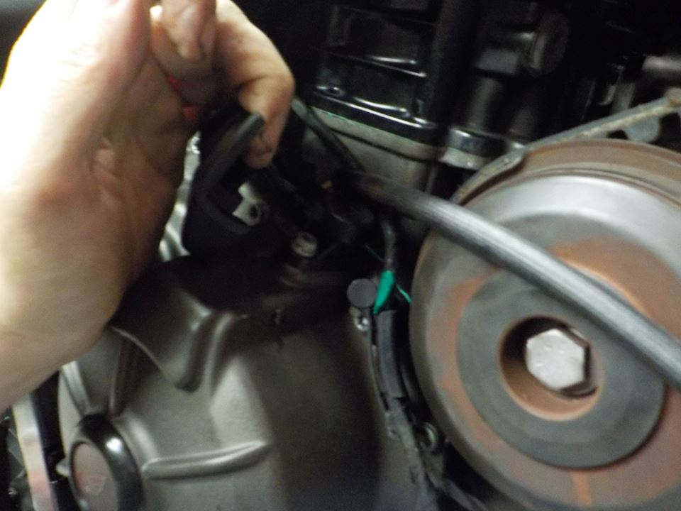 ignition timing sensor in and leave the stator cable for now as we going to drop the engine