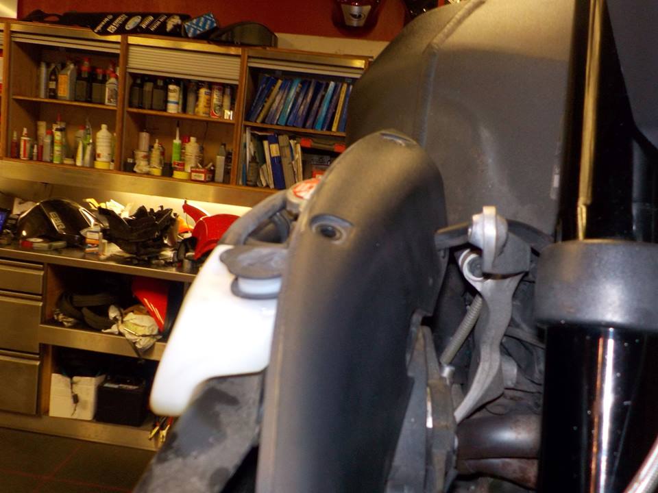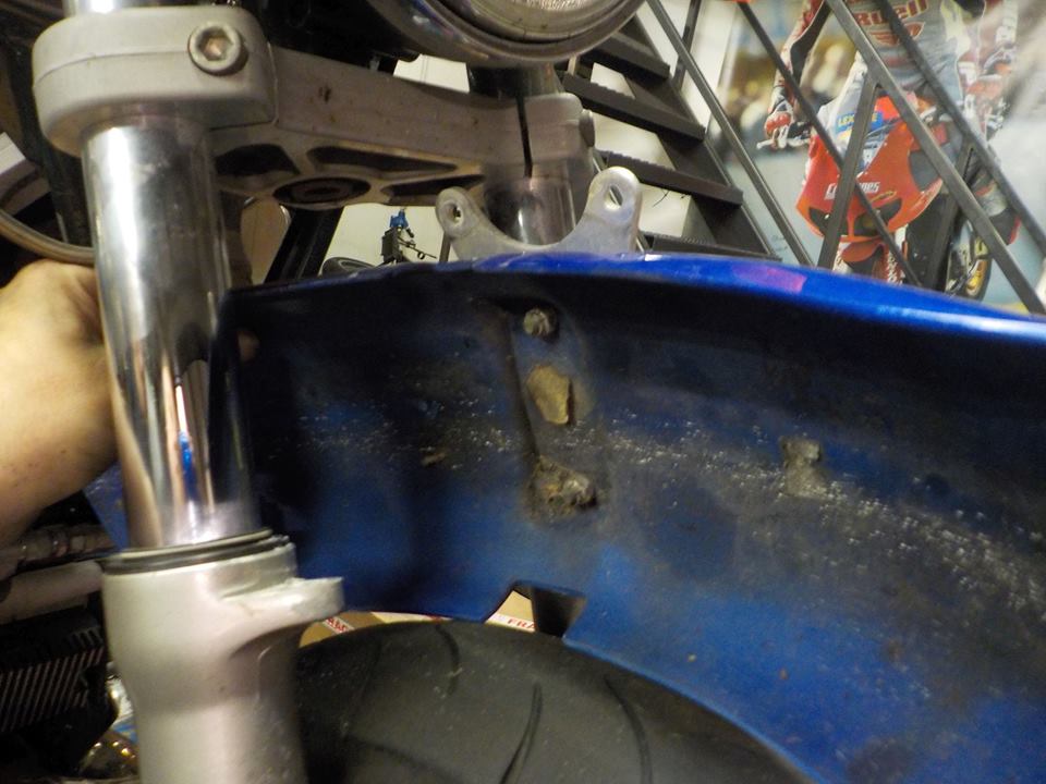 so making ready to drop the engine to check the front spark plug, front fender of