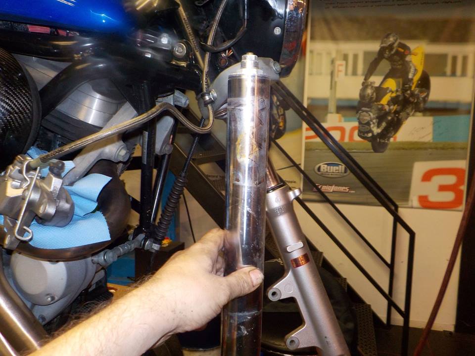 buell M2 in for yearly inspection , and fork oil
