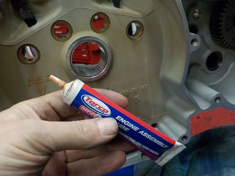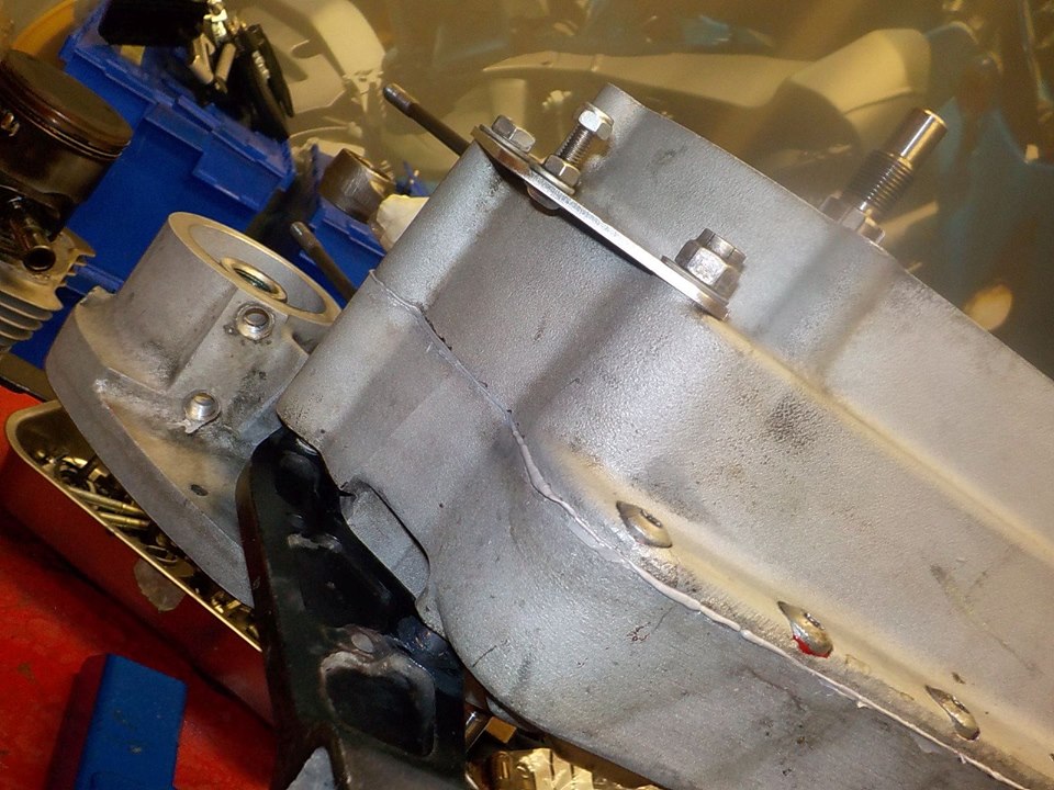 i use 2 gearbox bolts to mount the rear of the case to when the gasket is setting