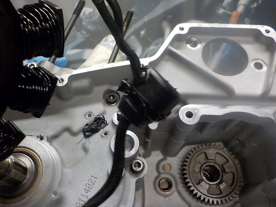 some silicone around the stator plug to help seal , and a bed of silicone to protect the wires