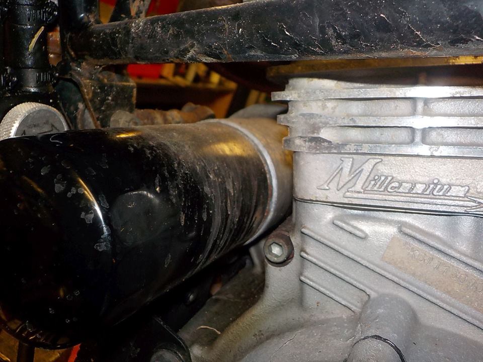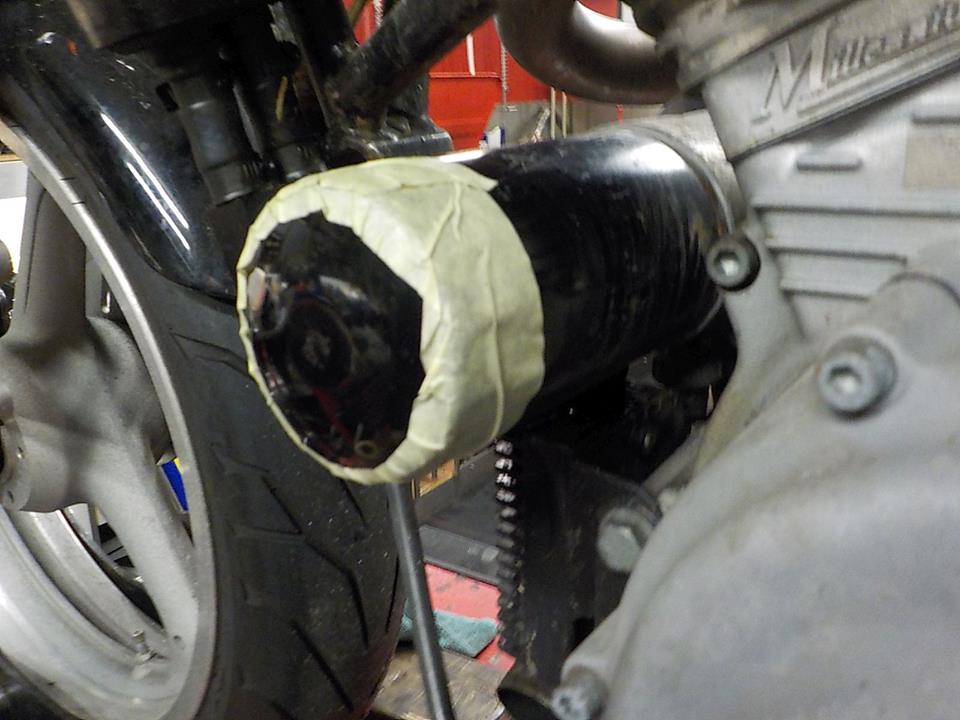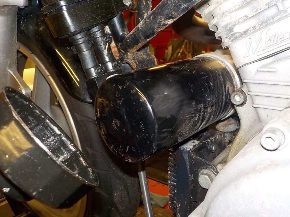 large filter was mounted.. i would not advice this with the oil cooler adaptor, the moment arm becomes big .. full oil filter and vibration , with oil cooler better use a short ( normal ) filter