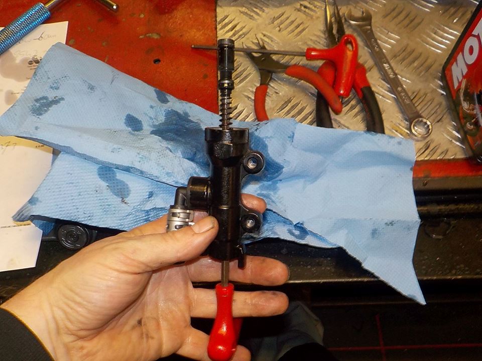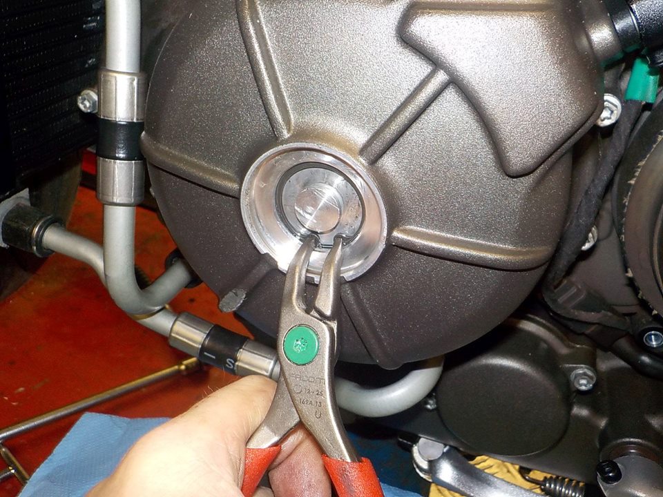 and remove the brake cylinder, careful pull the booth back , and circlip pliers to take out the lock ring