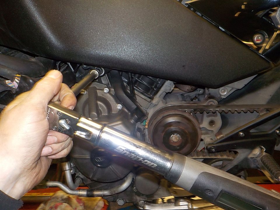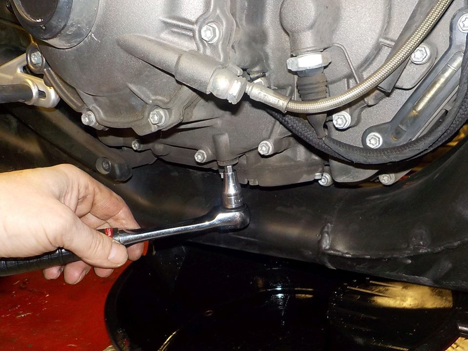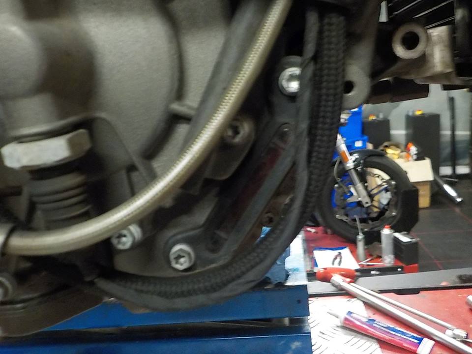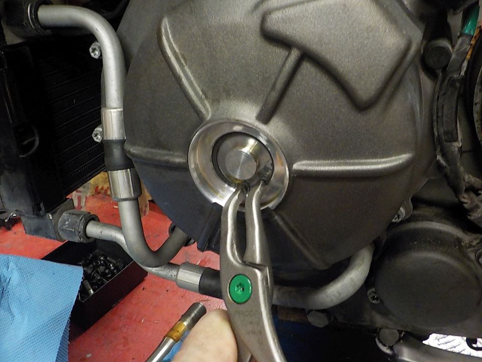 we are going to mount a aftermarket exhaust.. so mount the oil cooler bracket, with bolt and nut