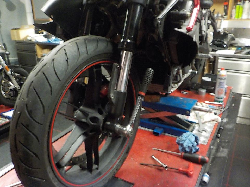 bike swapped around on the lift.. note to self.. need to re tighen the steering head bearings. as the steering head knacks while braking