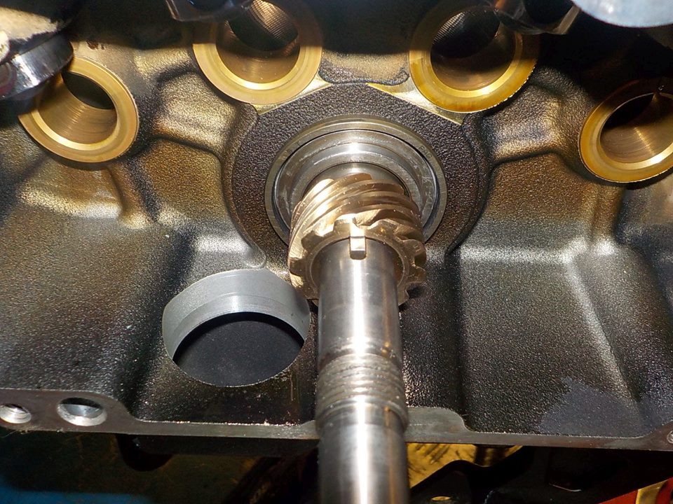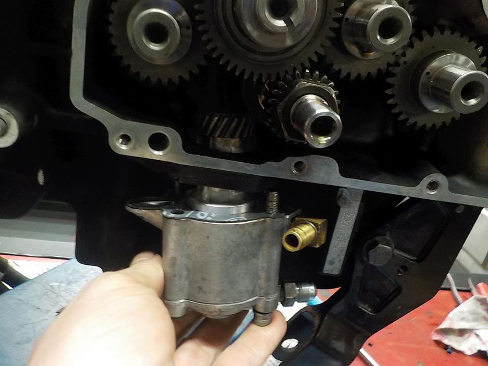 brilium bronze oil pump gear was al redy mounted , no to very little wear as expected , now with the crank alined and straigh.. should be even better
