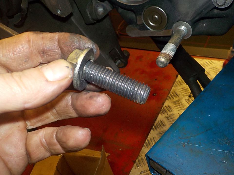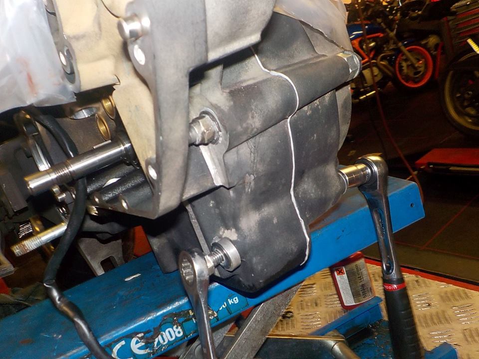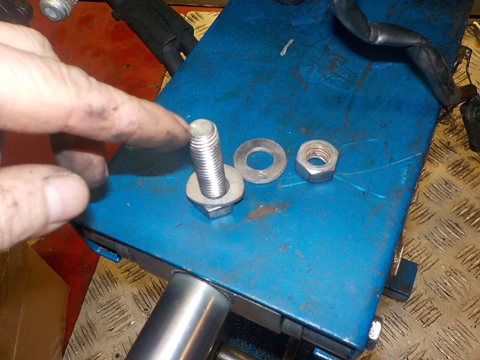 egine to swing arm adaptor .. using the D shaped washers