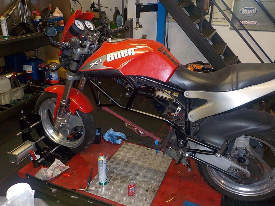 rear lifted in the hoist, tank and cover of — at Twin Motorcycles Buell Support forever.