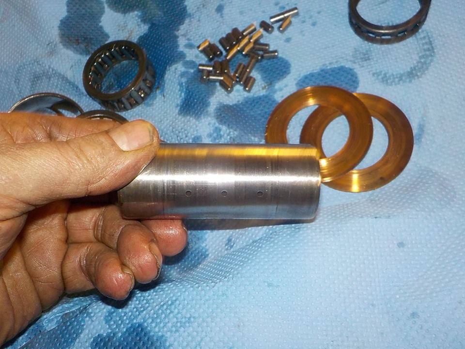 while the other side the surface is gone. this will not happen with our big end pins, as there hardened .. and i'm very sure the customer likes the work.. as the crank feels very nice now.. not like the wobbly rods normaly